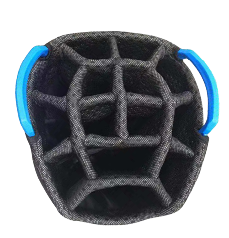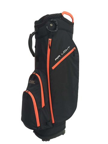 OUUL New Air Light 14 way cart bag features beautiful and unique printed material and multi-handle design. The bags has a 14 way full length divider, 6 pockets design with cart specific layout. Matching rainhood is included. 3.7Lbs only.