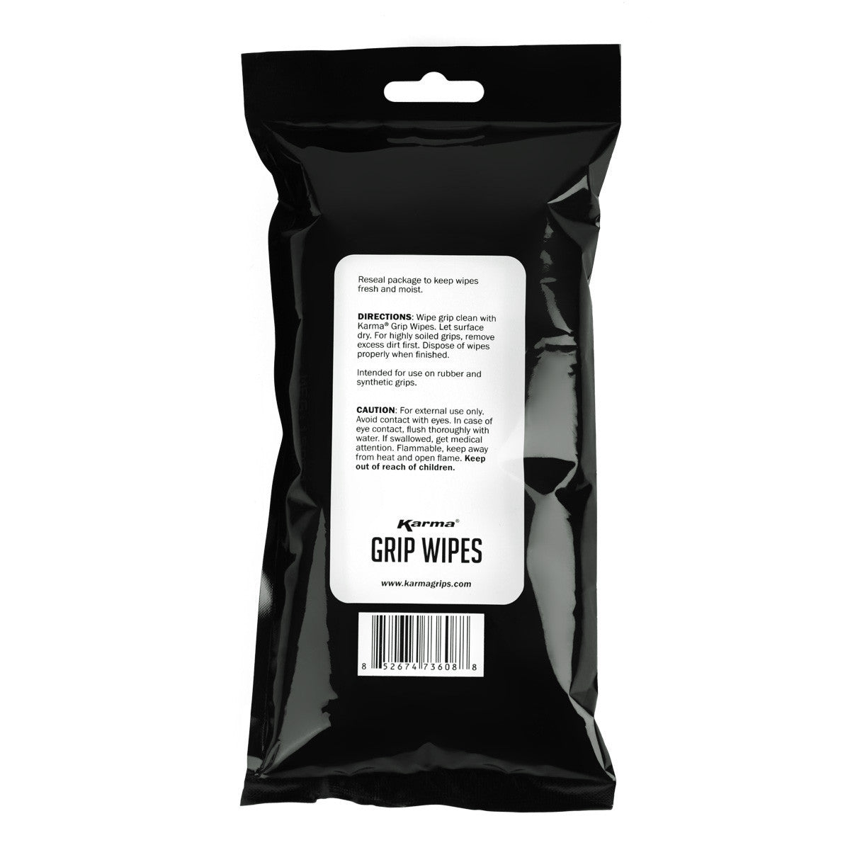 Karma Golf Grip Cleaning Wipes are a convenient, fast and effortless way to clean your grips of dirt and grime and makes your grips tacky once again. The Karma Golf Grip Cleaning Wipes come in a resealable 15-count package that easily fit inside your bag. The fast-drying formula goes to work to minutes. Finally, no more mixing soap and water and then waiting hours for the grips to dry the old-fashioned way. Let Karma Grip Wipes give you peace of mind and no more loss of valuable strokes due to slick grips.