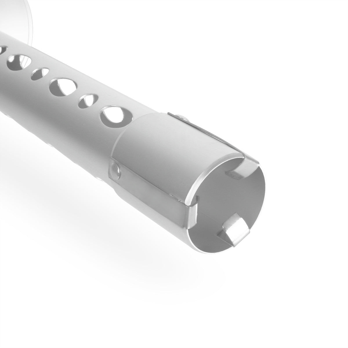 The spring clips on the aluminum tube grabs the balls and the sleeve holds them in place so they will not fall out.