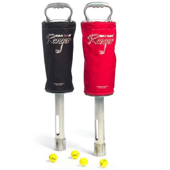 The BAG SHAG RANGER is a hand held golf ball retriever designed to hold 100 golf balls. Its open top design eliminates the need for a zipper so the balls empty through the top. It features a strong UV resistant cordura bag and all the same quality parts used in the Original Bag Shag.