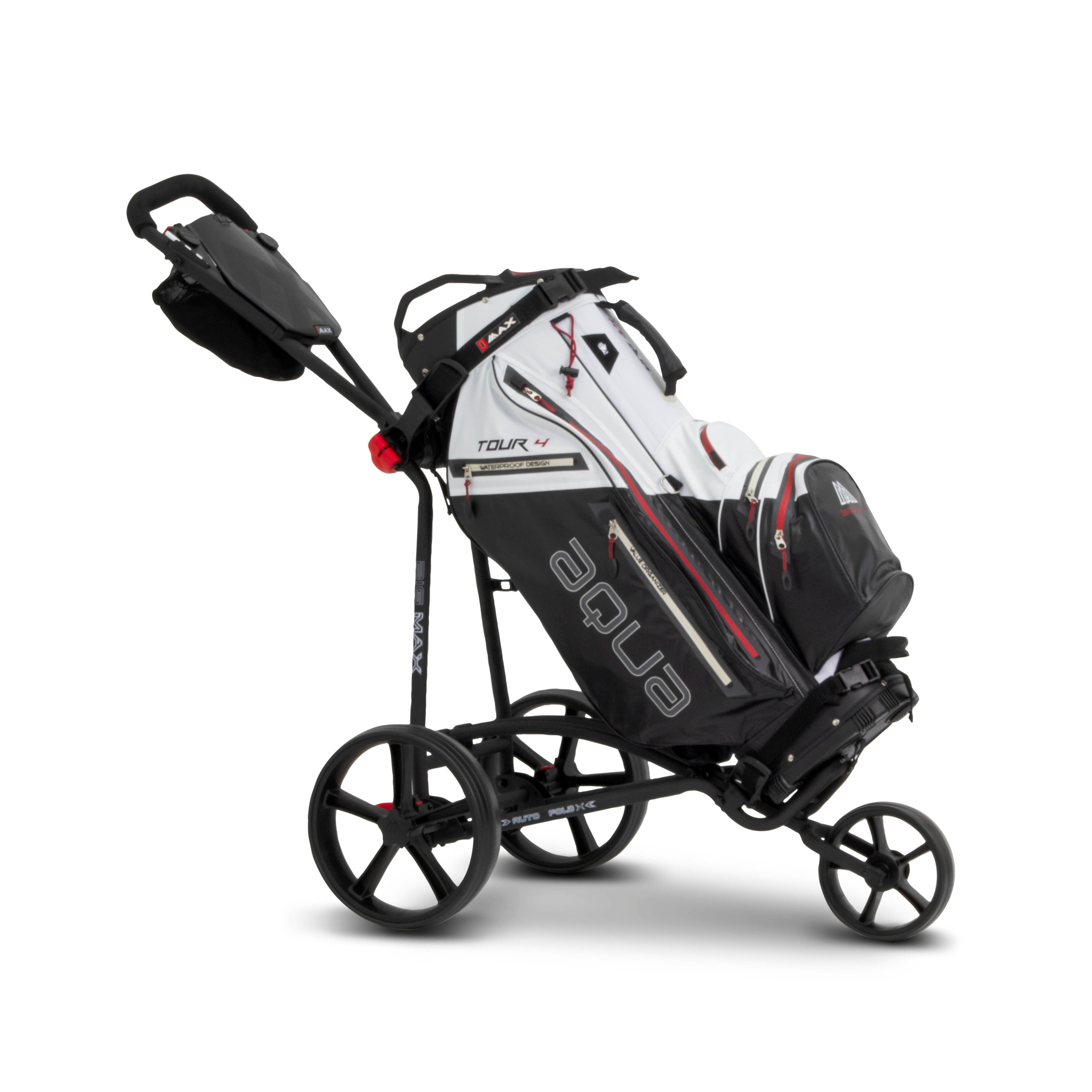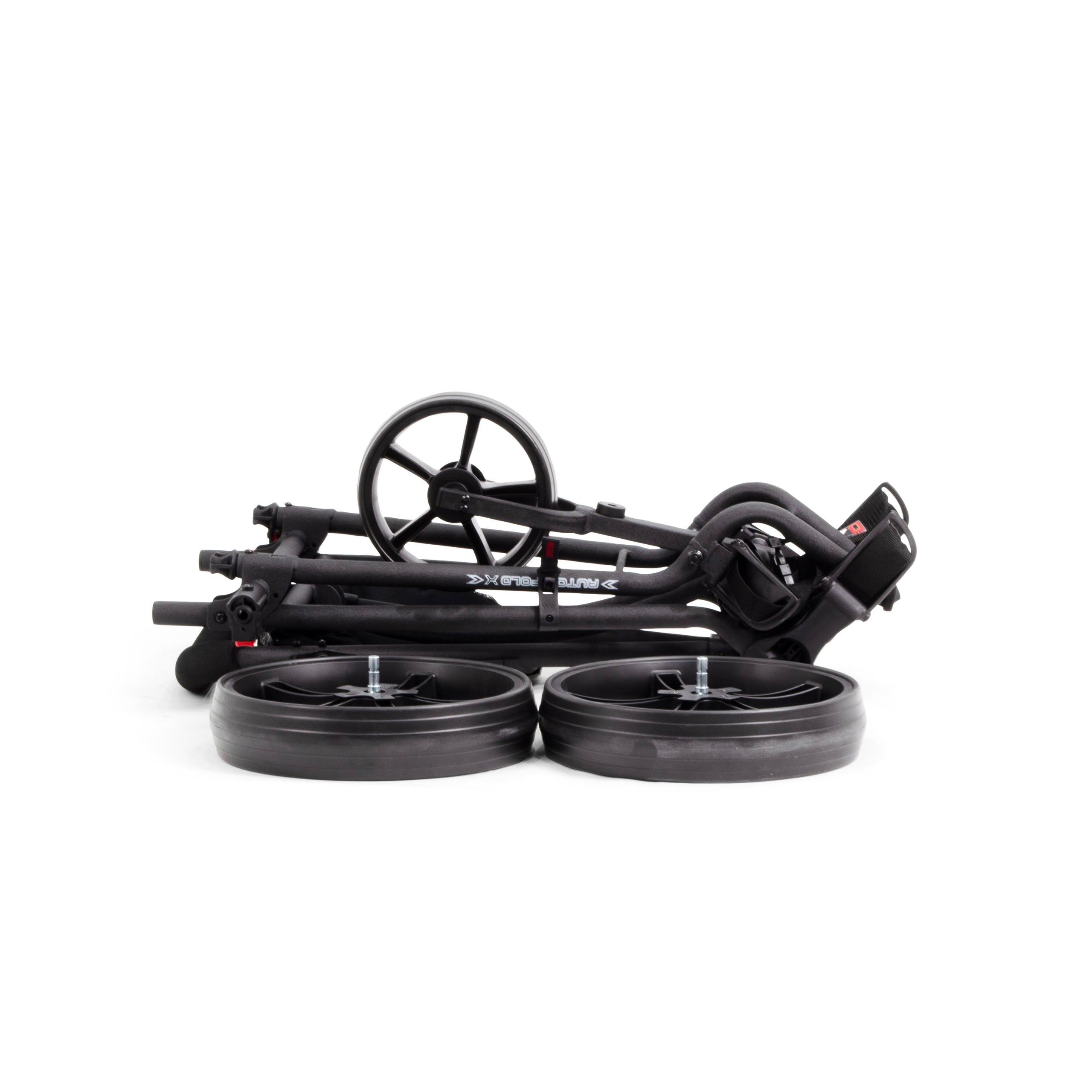 There is no comparable 3-wheel trolley, which you can assemble so easily and fast. As the name of this trolley suggests, you can fold and fix the trolley into a compact package with only one hand movement, including the automatically folding front wheel. With the same easy movement you can unfold the trolley in seconds. The Autofold X trolley is ingenious with its stylish and compact design making it the perfect accompaniment on any golf course.