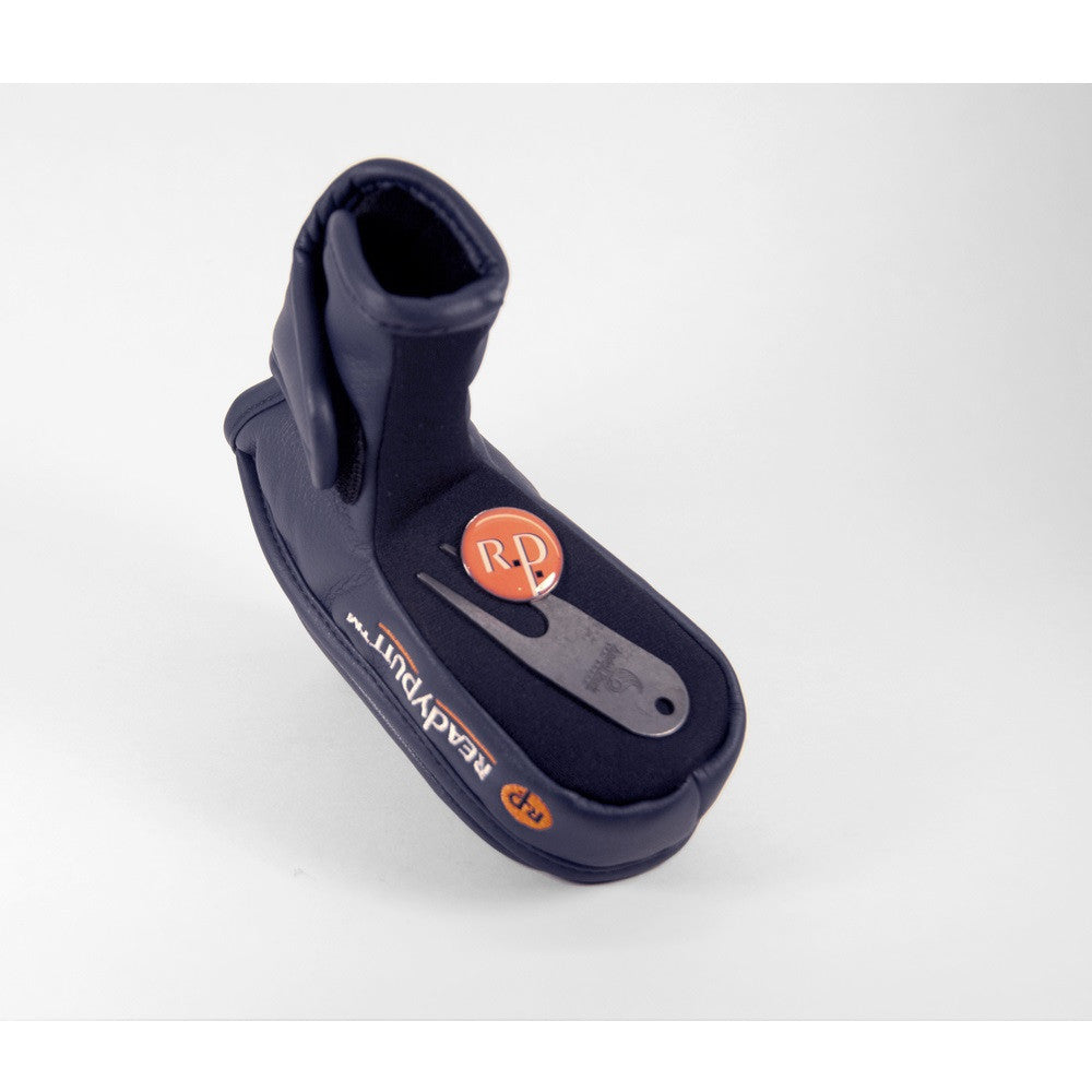 ReadyPutt Blade Mid-Mallet Putter Head Cover with Ball Cleaner - Navy Blue