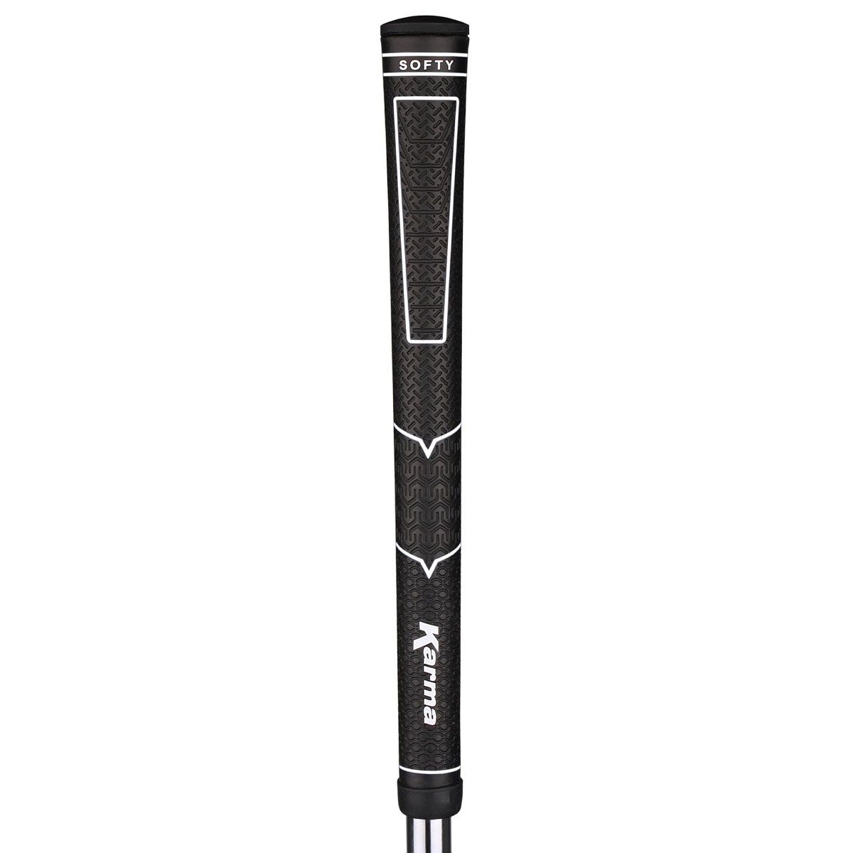 The all-new Karma Softy swing grips were designed for golfers wanting the ultimate comfort in every swing. The soft and tacky synthetic polyurethane outer layer feels great and won't slip, while the firm rubber inner core provides for stability and torsion control. The Tri-Zonal Surface pattern provides different levels of traction for each part of the grip, especially in the areas you need most. Experience all weather performance in these shock absorbing, cushioned golf grips.