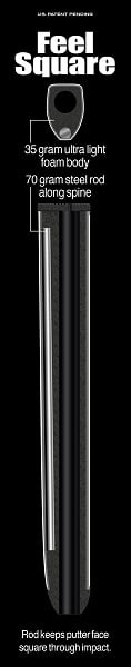 The Gravity Grip is a major breakthrough in putter grip technology. The body of the grip is ultralight EVA foam that weighs only 55 grams. By placing a 70 gram steel rod along the entire length of the grip ½ inch below the shaft, the hands can feel the precise angle of the face. The hands and the putter head are tied together creating a square zone before and after impact. Feeling is believing.