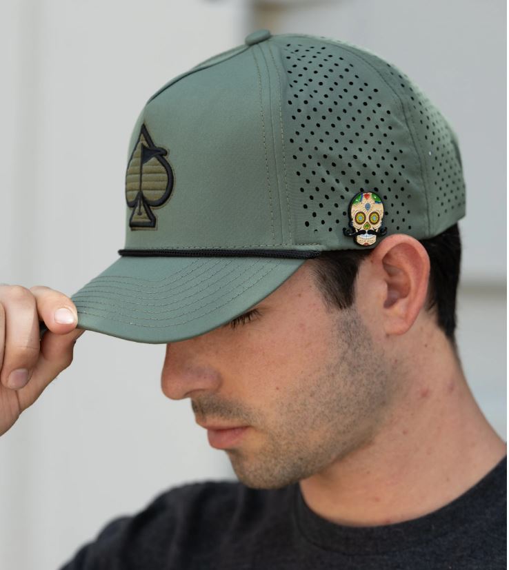 - Rope hat with custom "Fairway Wave" Spade logo with embroidery on the front panel