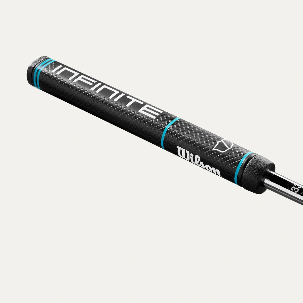 Introducing the Wilson Infinite® Bucktown™ putter, a fang style mallet in the deluxe Infinite putter collection. Featuring a new midsize multi-textured, no-taper grip which prevents wrist rotation. The Bucktown has an anti-glare finish with triple alignment lines to help keep your eye on the ball while dialing in your focus on every single putt. Its double-milled face promotes consistent ball impact, roll and distance control for short-game success.