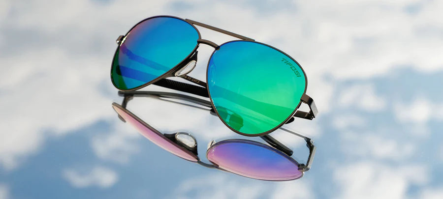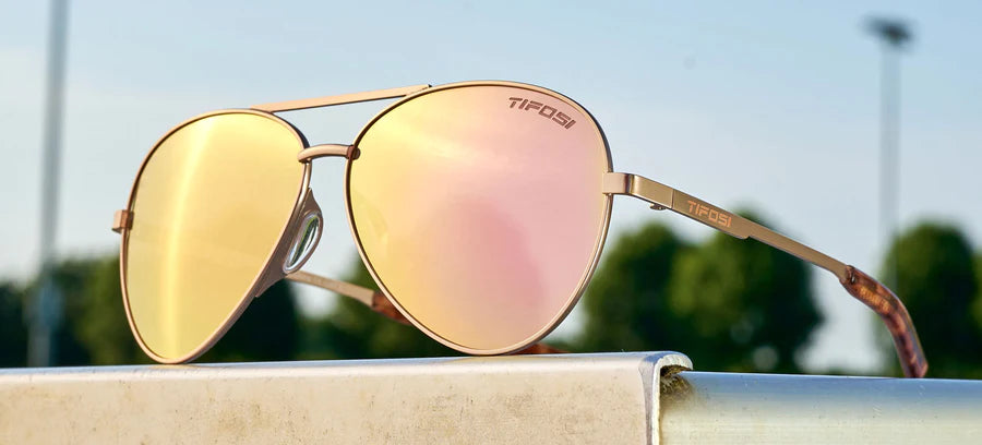 The sun throwing you some heat? No worries. Tifosi’s Glide technology helps Shwae slide on easily without pulling hair and ensures the glasses stay in place so you can focus on your performance. The polycarbonate, teardrop shape lens is shatterproof and provides 100% UV protection. Tifosi’s mirrored aviator sunglasses are durable, made from stainless steel that is both lightweight and comfortable.