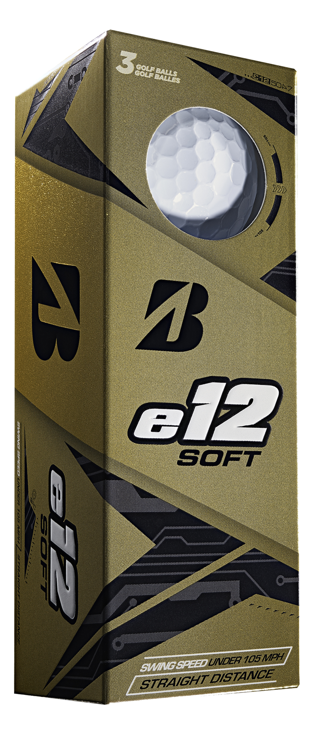 Distance Performance class, 3-piece surlyn golf ball that delivers sidespin reducing performance, with added distance off the tee with a softer feel. Bridgestone’s proprietary new Active Acceleration Mantle layer is a key component of the 3-piece construction. The Active Acceleration Mantle is comprised of a new High Performance Polymer material that provides increased thrust and higher initial velocity at impact, while allowing Bridgestone to soften the core for greater forgiveness and enhanced feel. Designed specifically for players with less than 105 MPH driver swing speeds. The e12 SOFT utilizes Bridgestone’s Delta Wing Dimple pattern for less drag and optimized aerodynamics in the cover. Available in White, Matte Green, Matte Red and Matte Yellow.