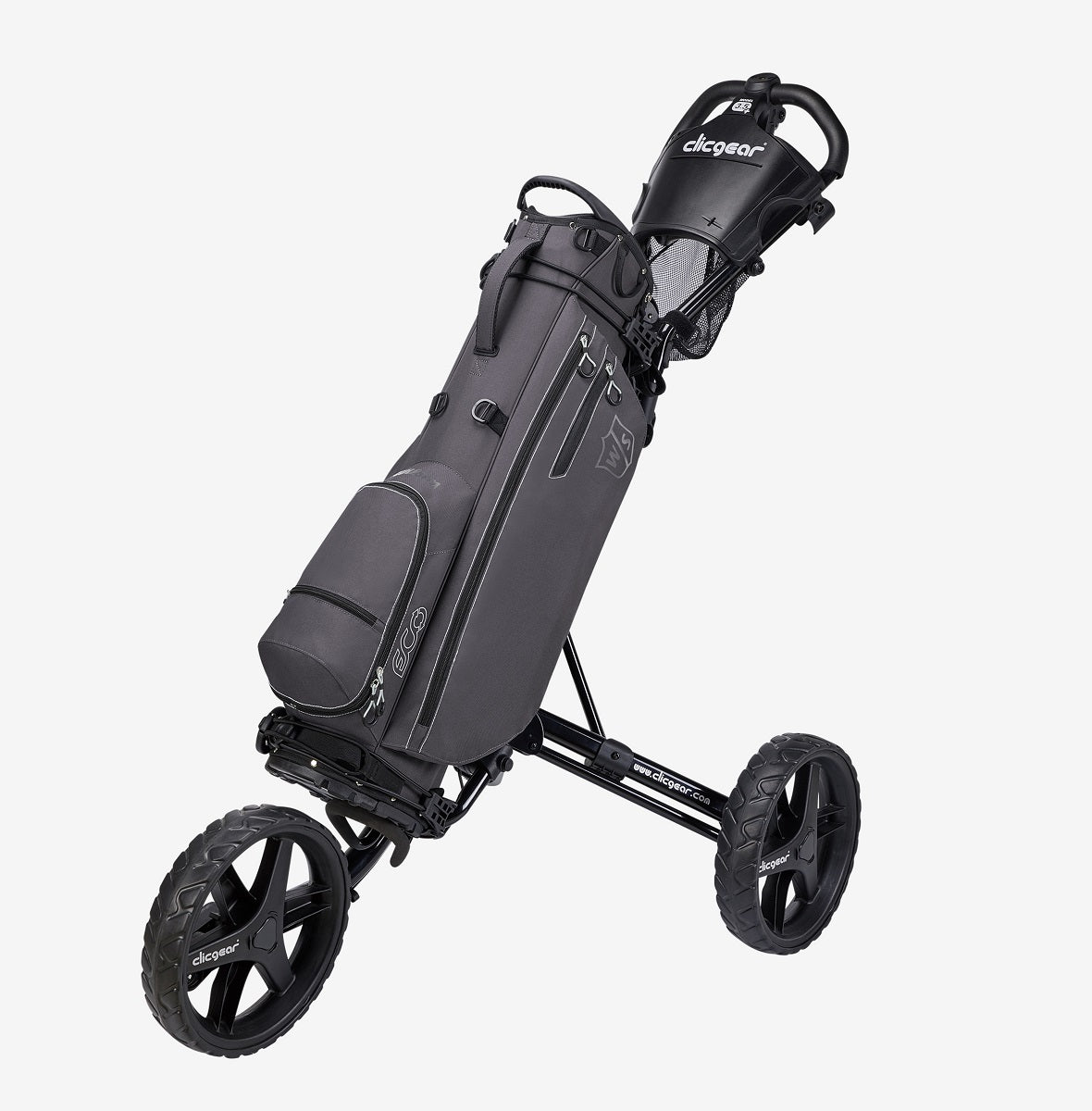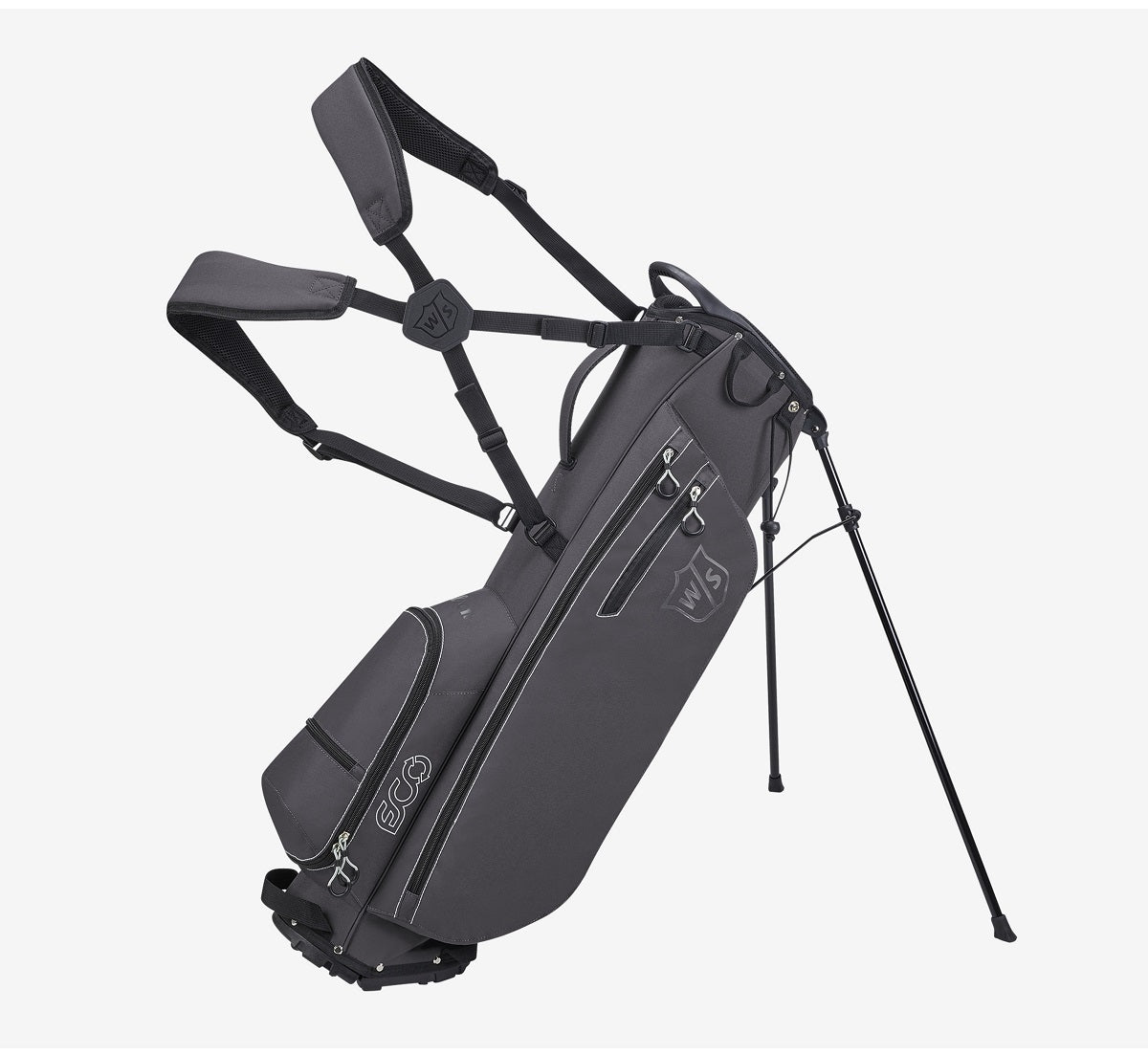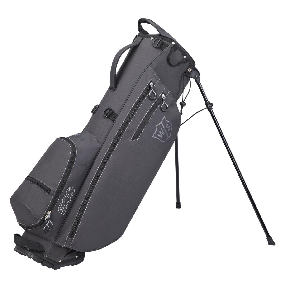- WILSON STAFF ECO CARRY BAG EXTRA FEATURESEarth-friendly material made from recycled water bottles - Stay flat base and self-activated legs for stability - Ergonomic, fully-adjustable shoulder straps - Umbrella holder - Rain hood - YKK® premium zippers