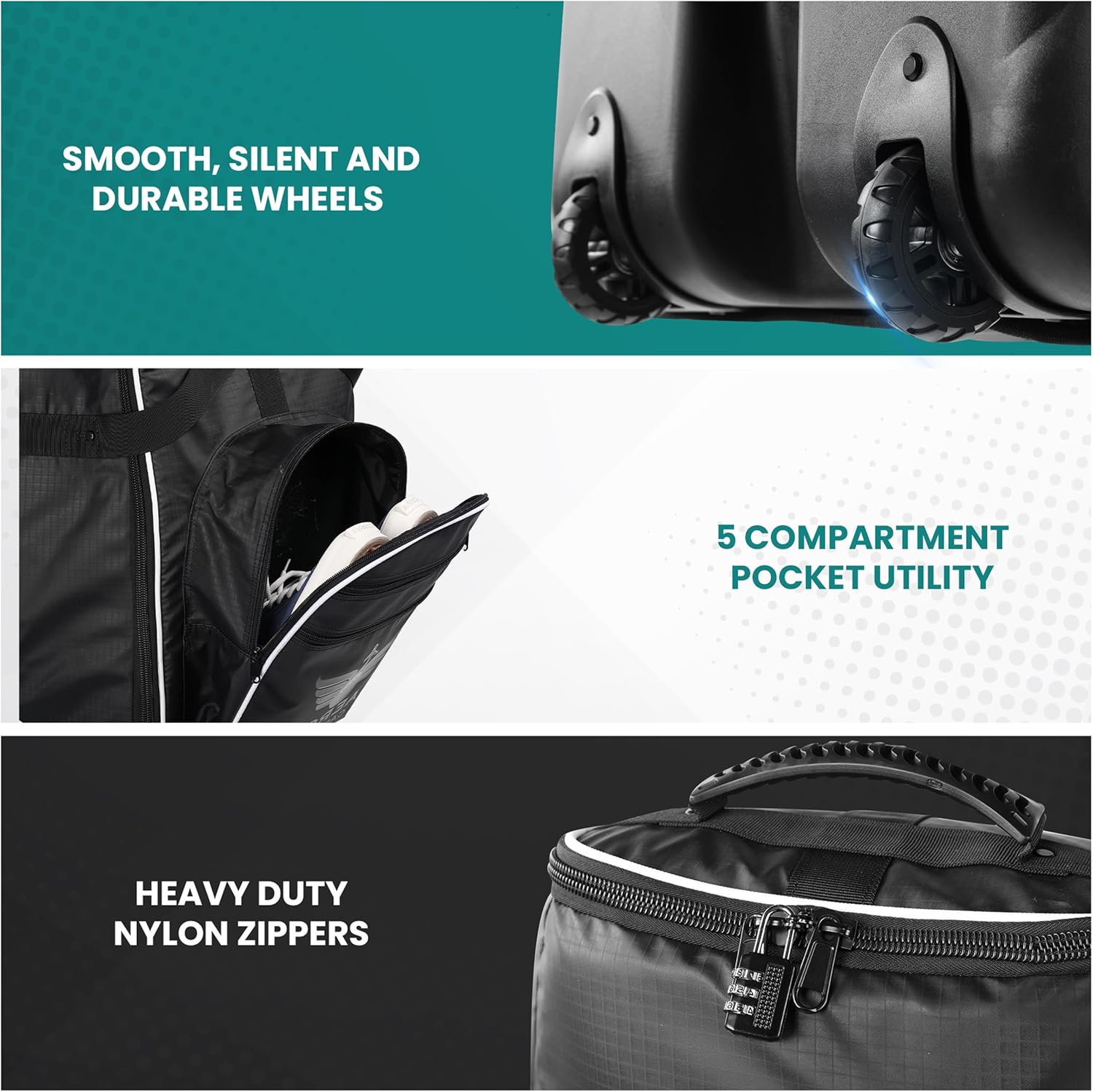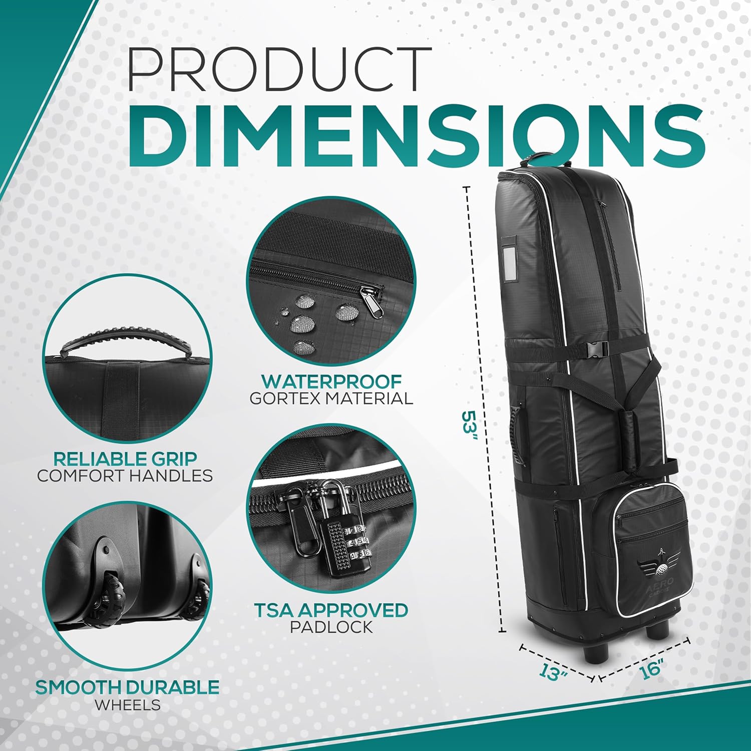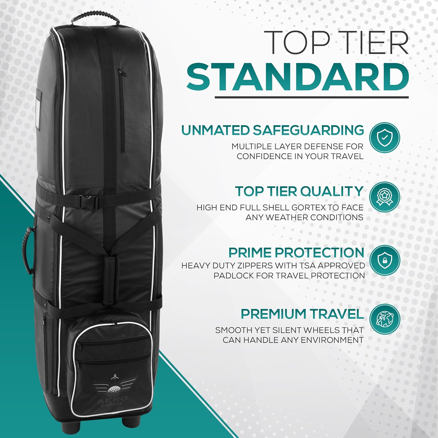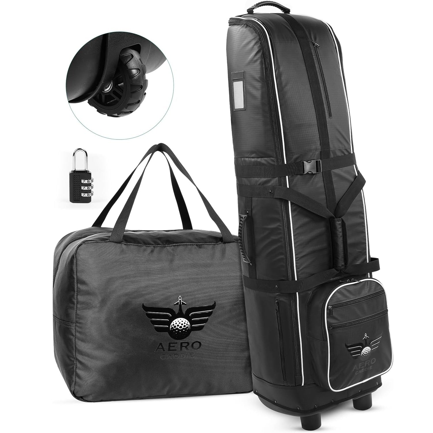 Navigate airports and terrains with ease thanks to the Smooth Silent wheels, engineered to glide quietly and smoothly on any surface. Heavy duty zippers and an integrated TSA approved padlock so your belongings are not just secure, but also meet airline travel standards. With Aero Caddie, your golf travel will be easy.