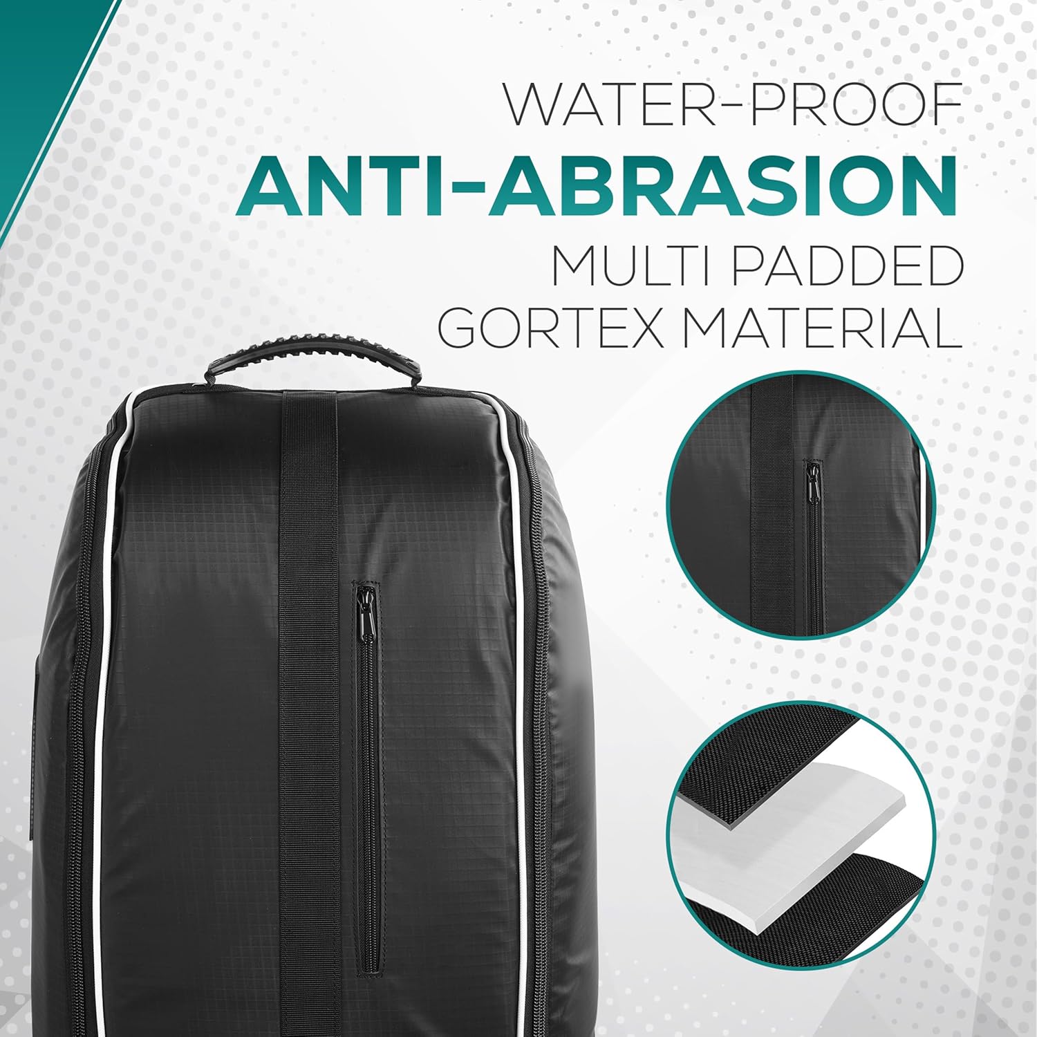 Crafted from GORTEX material, the Aero travel golf bag withstands any weather condition, keeping your equipment dry, secure and protected. The 100% waterproof feature ensures that your golf clubs remain in ready to play condition.