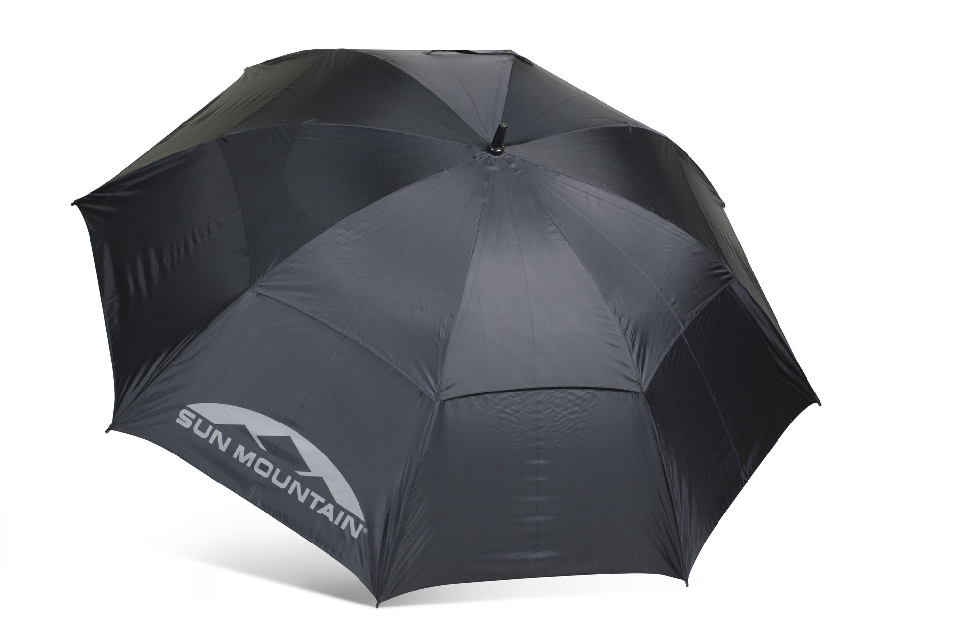 The auto-operation, double-canopy umbrella is perfect for playing golf in the rain or sun. The Silver umbrella is UPF-rated 60+ and the black is rated 30+. The rubber-covered, slip-resistant handle fits perfectly in the umbrella holder of Sun Mountain carts.