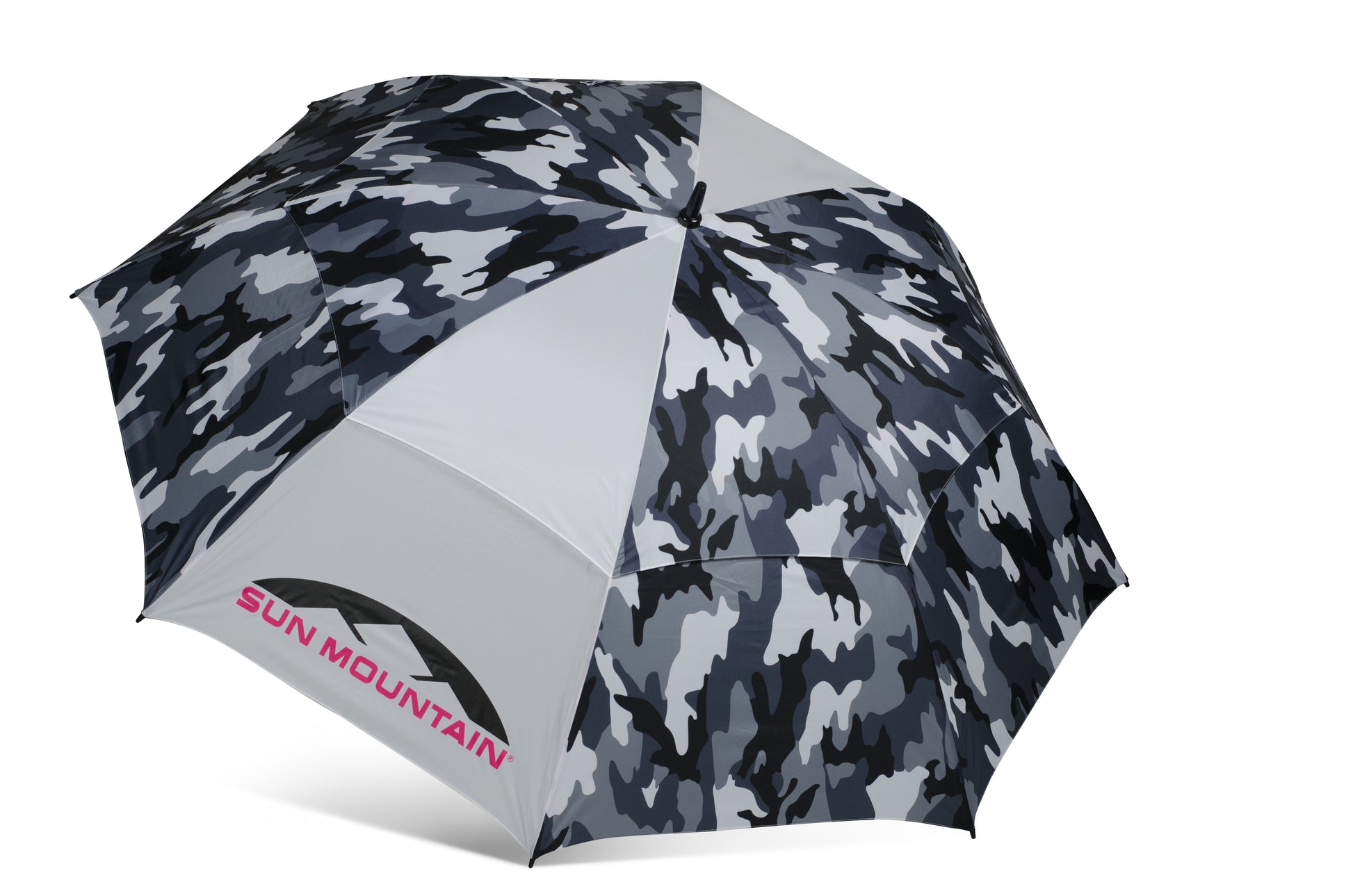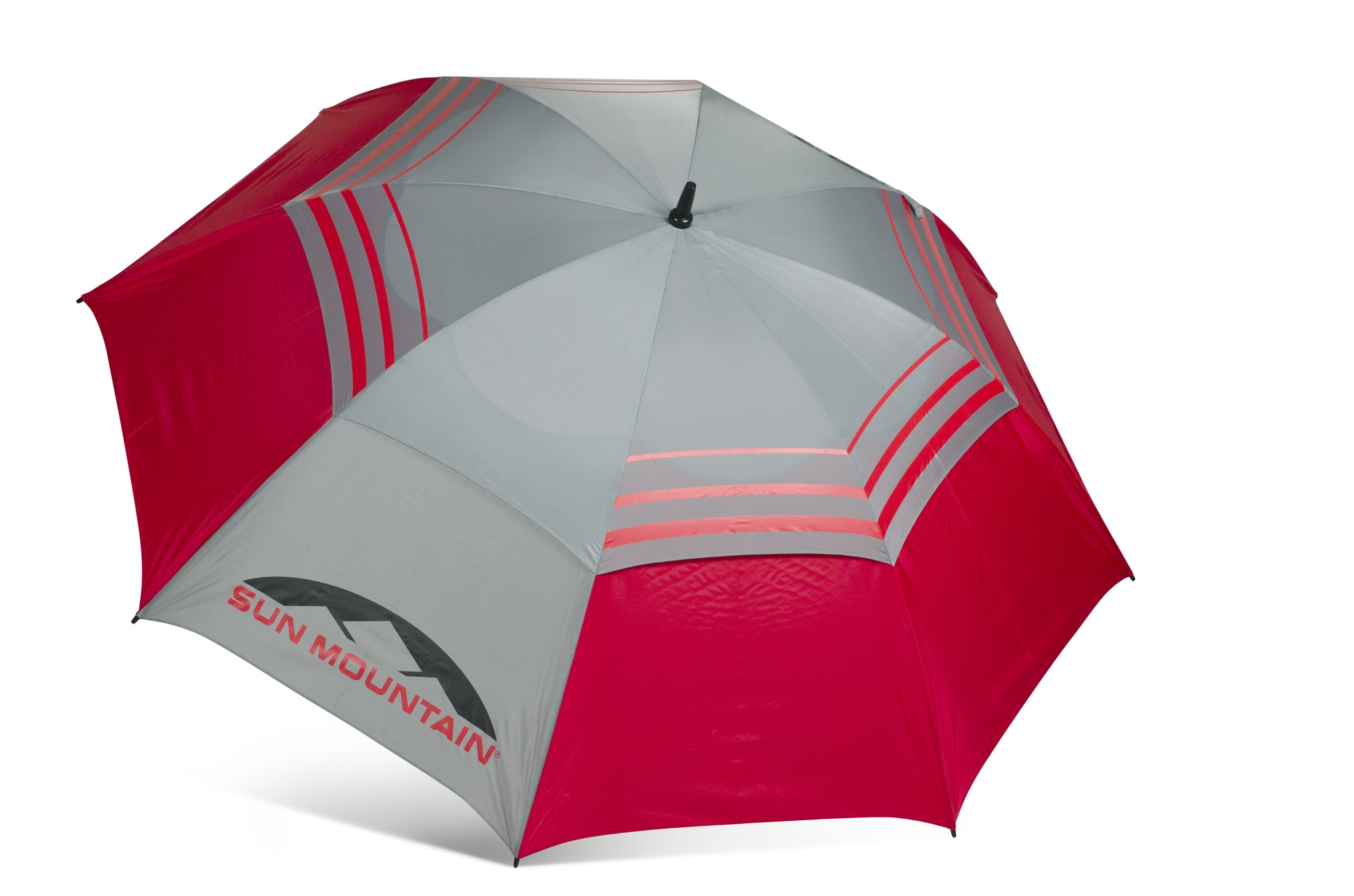 The manual-operation, double-canopy umbrella is perfect for playing golf in the rain or sun. The silver umbrella is UPF-rated 60+ and the other colors are rated 30+. The rubber-covered, slip-resistant handle fits perfectly in the umbrella holder of Sun Mountain carts.
