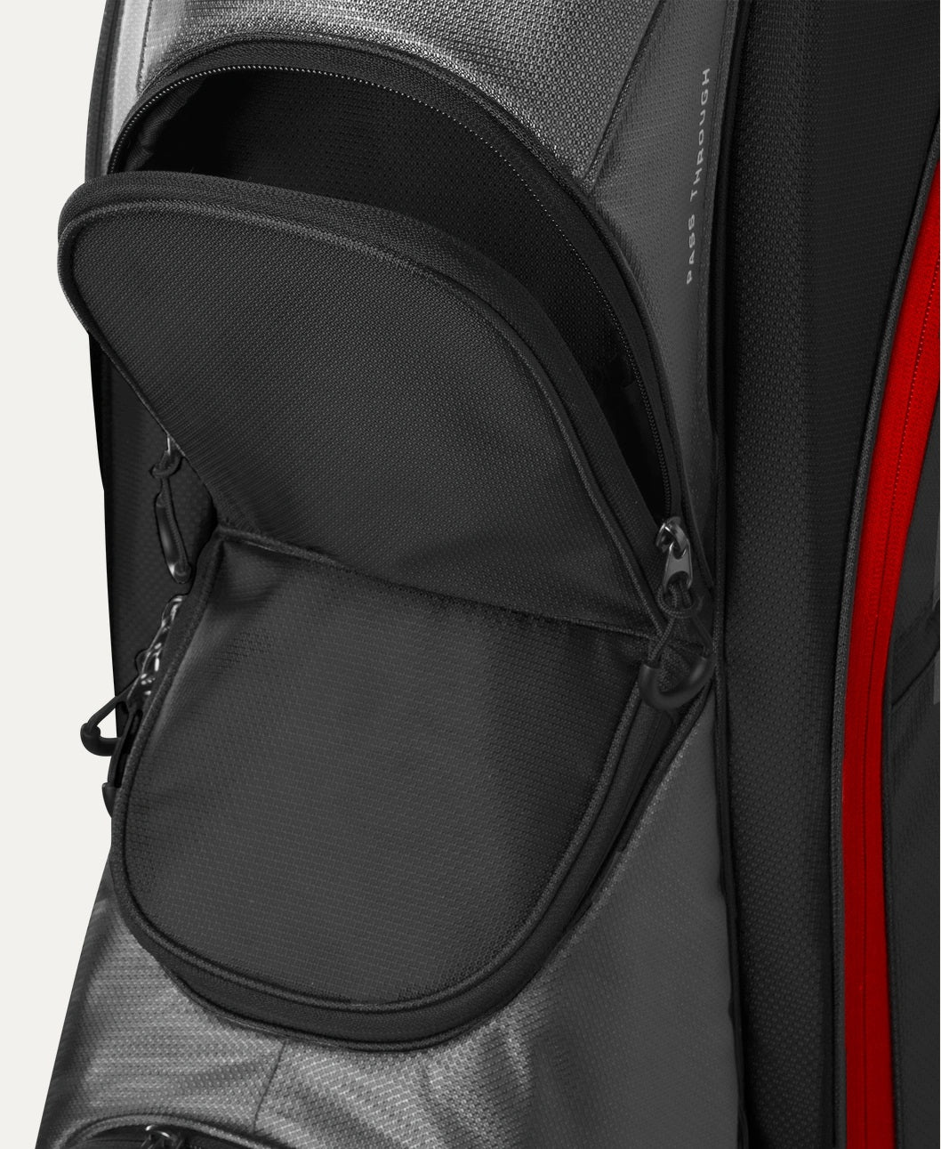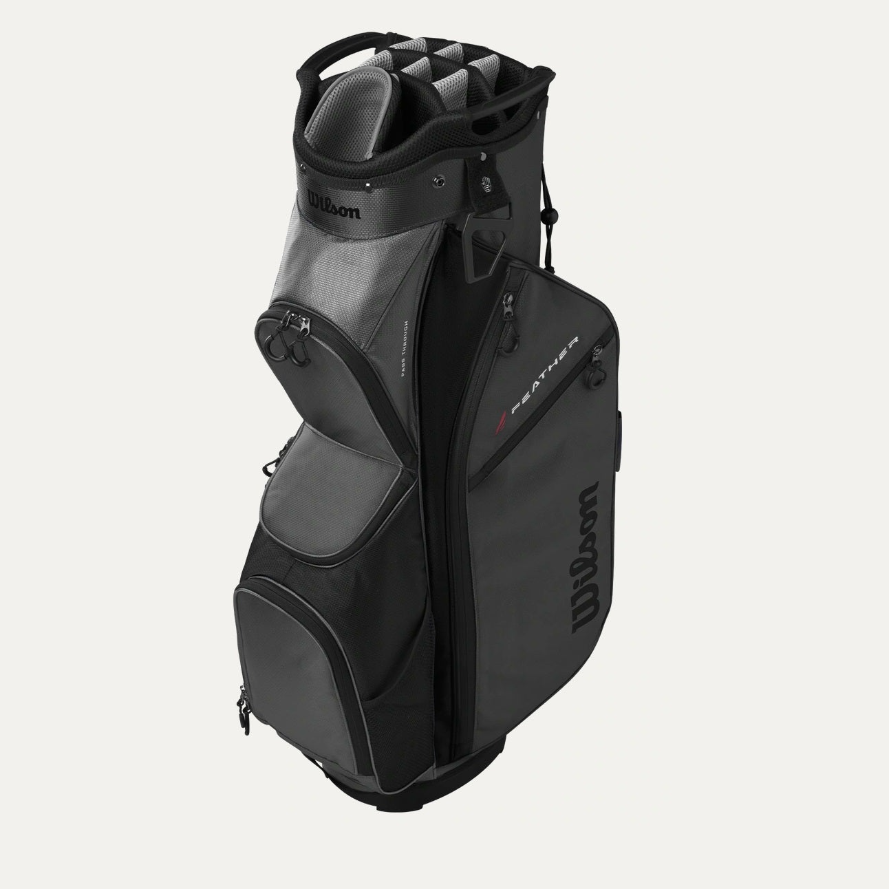 The 14-way top keeps clubs organized and protected, while nine pockets offer versatile storage options, and the sturdy base is designed to fit on both motorized and pull carts.