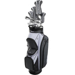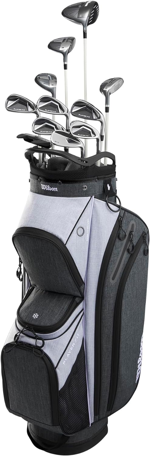 The Wilson Women's PlayerFit™ complete golf club set has everything a golfer needs to get out on the course and flying down the fairway. This set includes a titanium driver, stainless steel fairway wood and stainless steel hybrids. Stainless steel irons (6-PW), sand wedge and a putter ensure there's the right club for every lie, from distance approach shots to the green. This boxed set includes graphite shaft options for the irons, a multipurpose cart bag along with head covers for woods, hybrids and putter.