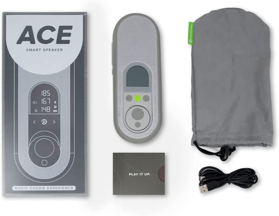 GPS DISTANCES ON LCD DISPLAYThe ACE Smart Speaker features a built-in LCD display that shows GPS distances to the front, center, and back of the green. |