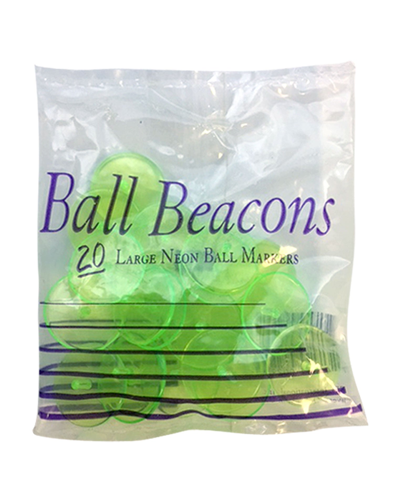 20 count, large, quarter size neon ball markers.  Easy to see and find!