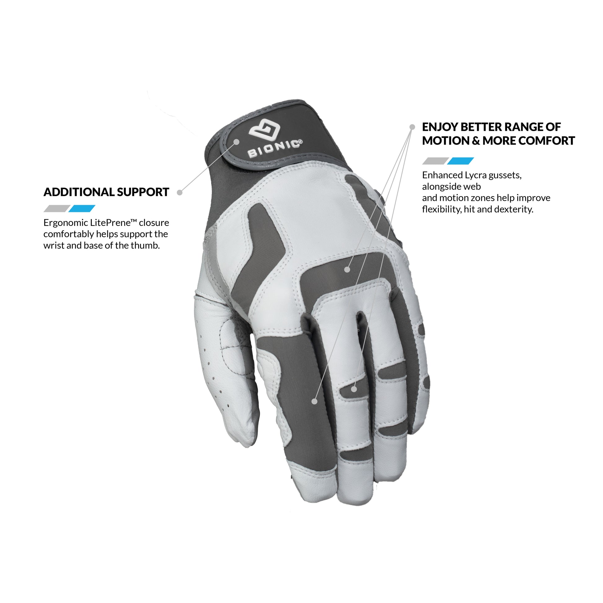 Enjoy Better Range of Motion- Lycra gussets, alongside web and motion zones help enhance flexibility and dexterity. Flexion zones mimic the natural creases in the fingers, making it easier to close the hand and promote breathability.