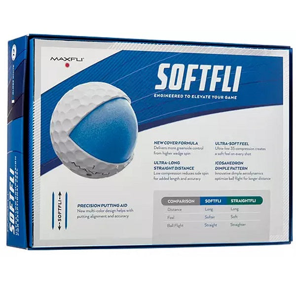 Maxfli’s softest golf ball designed to optimize feel and performance. Blend unparalleled feel and performance while playing Maxfli SoftFli Matte Golf Balls. Maxfli’s softest golf ball delivers feel and feedback on shots from tee to green. The reformulated core maintains faster ball speeds and lower spin for accuracy. Consistent flight characteristics are achieved through a high surface coverage 332 dimple pattern. A soft Ionomer cover formulation with vivid matte coloration unlocks greater control and visibility.