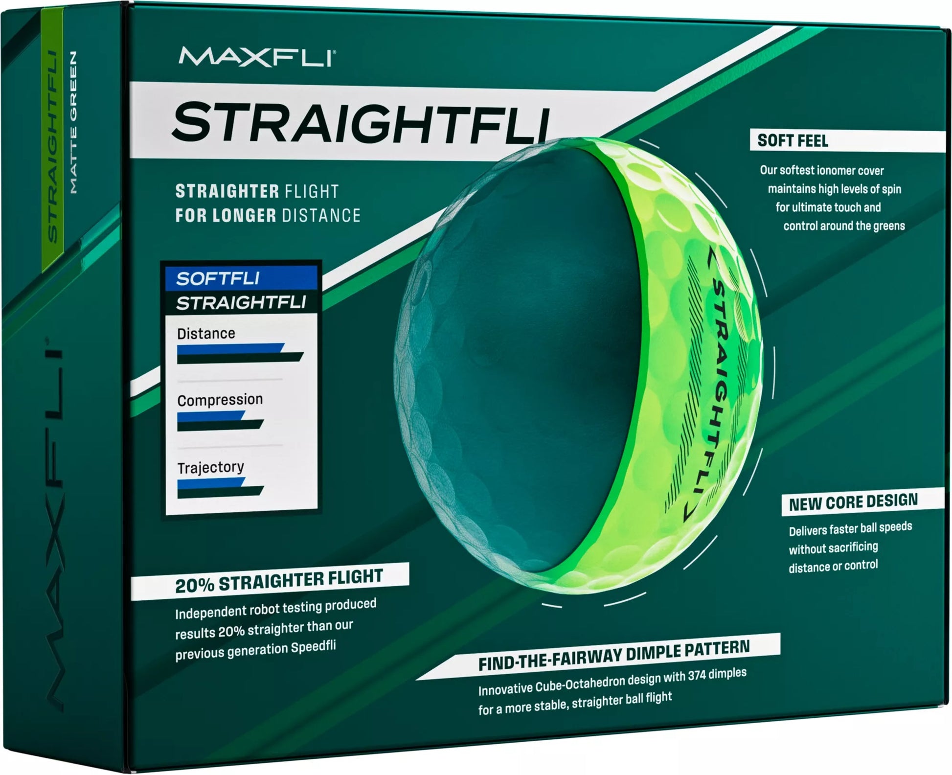 MAXFLI’S STRAIGHTEST GOLF BALL featuring a unique Find the Fairway dimple pattern that utilizes 374 large and small dimples in stacked and packed patterns to reduce lift and increase accuracy. The average width of a Fairway is 40 yards. This means on a normal 25 yard slice, the ball will at least find the rough. With the StraightFli, that same shot has the ability to go from the rough to the fairway.