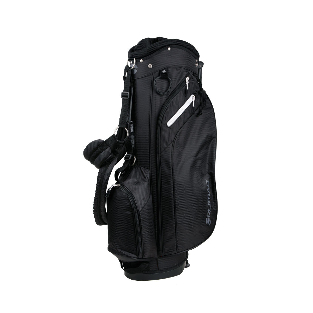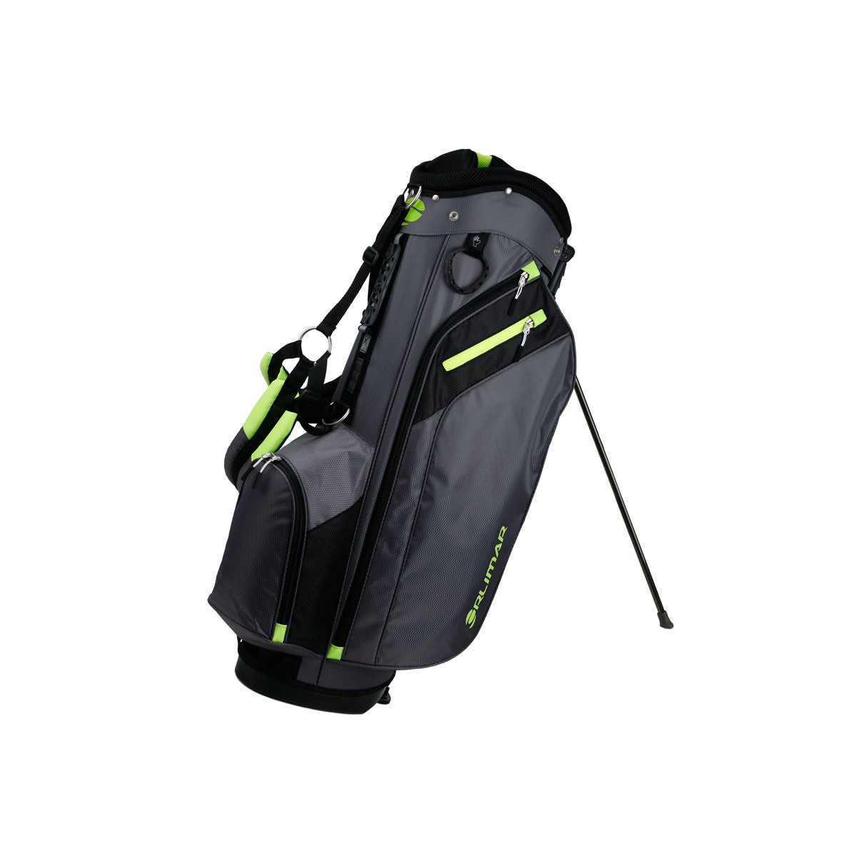 The Orlimar SRX 7.4 stand bag features ultra-modern, cutting edge colors and design, packed with all the bells and whistles golfers expect in a full featured stand bag. Features: 8.5-inch, 7-way graphite friendly separator top, 3 full length club shaft dividers, Convenient bottom lift handle, 4 zippered pockets including a velour lined valuables pocket, Padded double carry strap and hip pad, Tee holder, umbrella holder, rain hood cover and towel ring with Velcro glove attachment, Easy release, tempered stand legs, Velcro strap closure secures stand legs when not in use and Constructed from light weight dobby nylon materials.