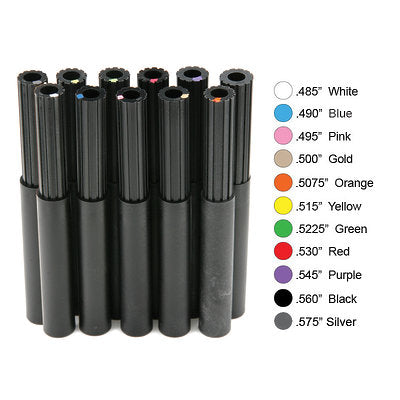 No more second guessing, accurately determines the exact sized extender you need. Color coded to 11 sizes. These Extenders for Graphite / Steel Golf Shafts fit virtually all graphite shaft as well as the most popular steel shaft sizes.