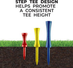 Pride Step Tees allow golfers to place their tee at a consistent height each and every time. Consistent ball placement allows the golfers to worry less about the height of their ball and more about their game!