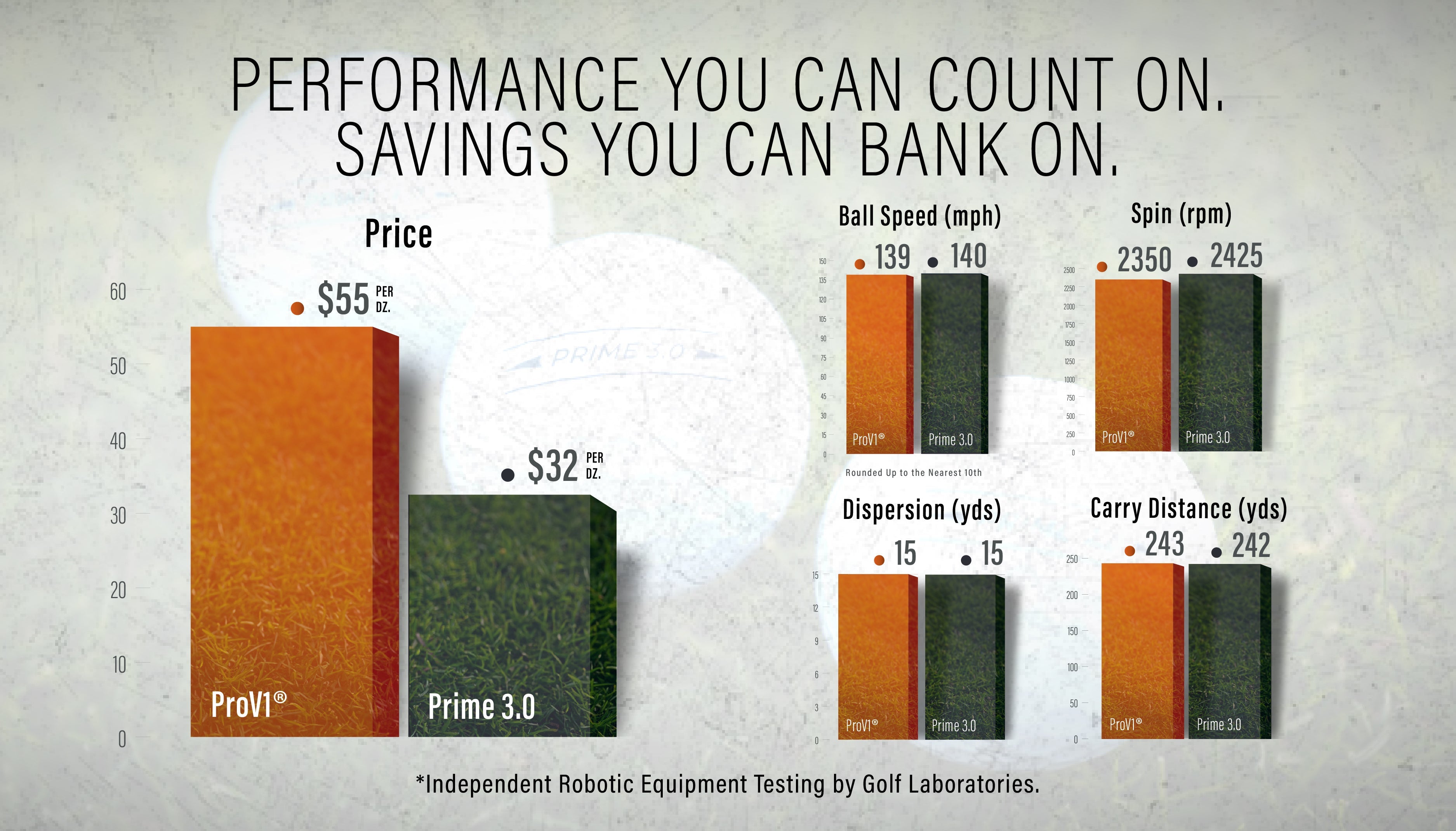 Total performance for a wide range of golfers. The new 3-piece PRIME 3.0 features a new core for high ball speed and low driver spin for maximum distance. The mantle layer is designed for controlling iron spin to mid-high levels to execute every shot in the bag while our updated NEW XV3 Urethane Cover provides a soft feel, ultimate short game control, and durability.