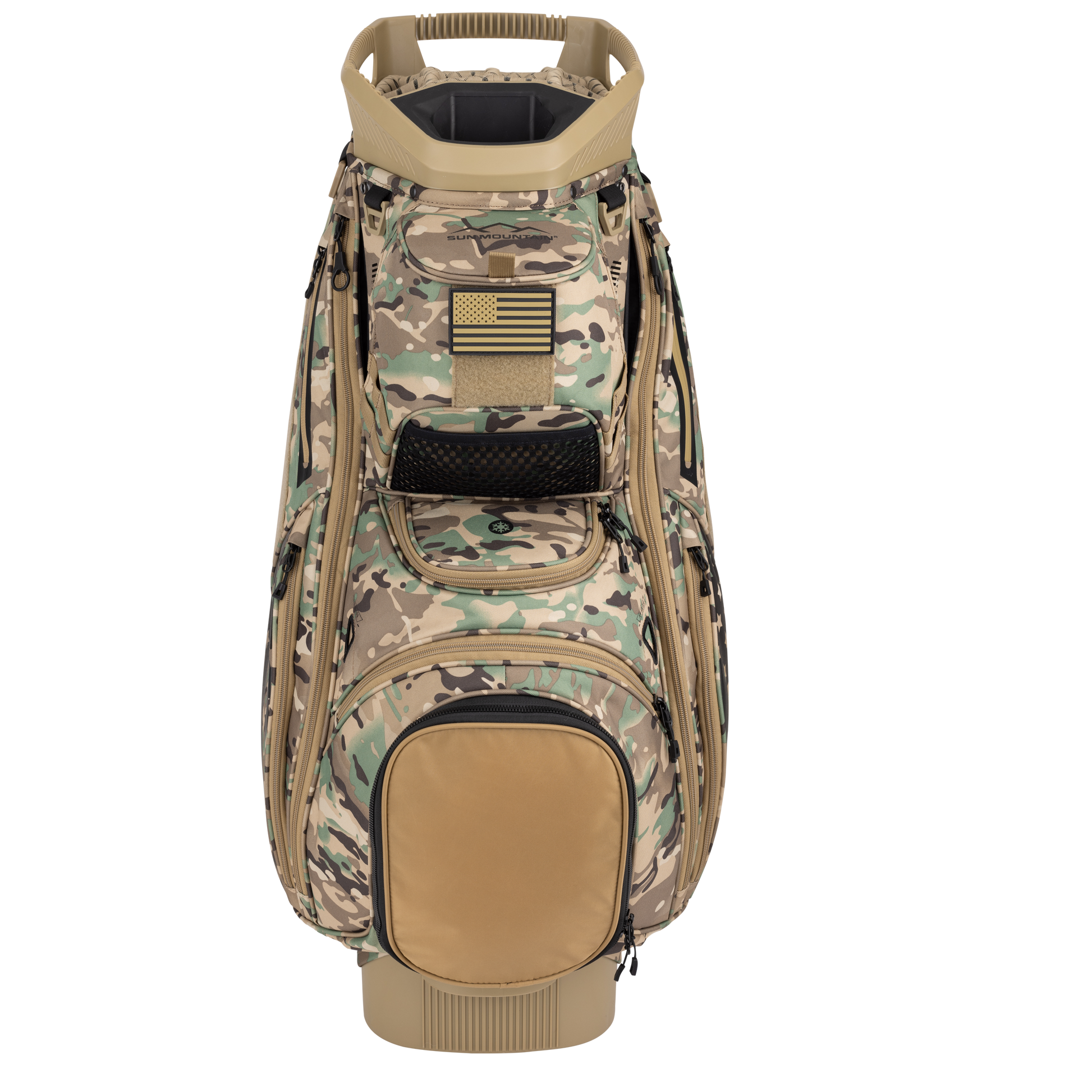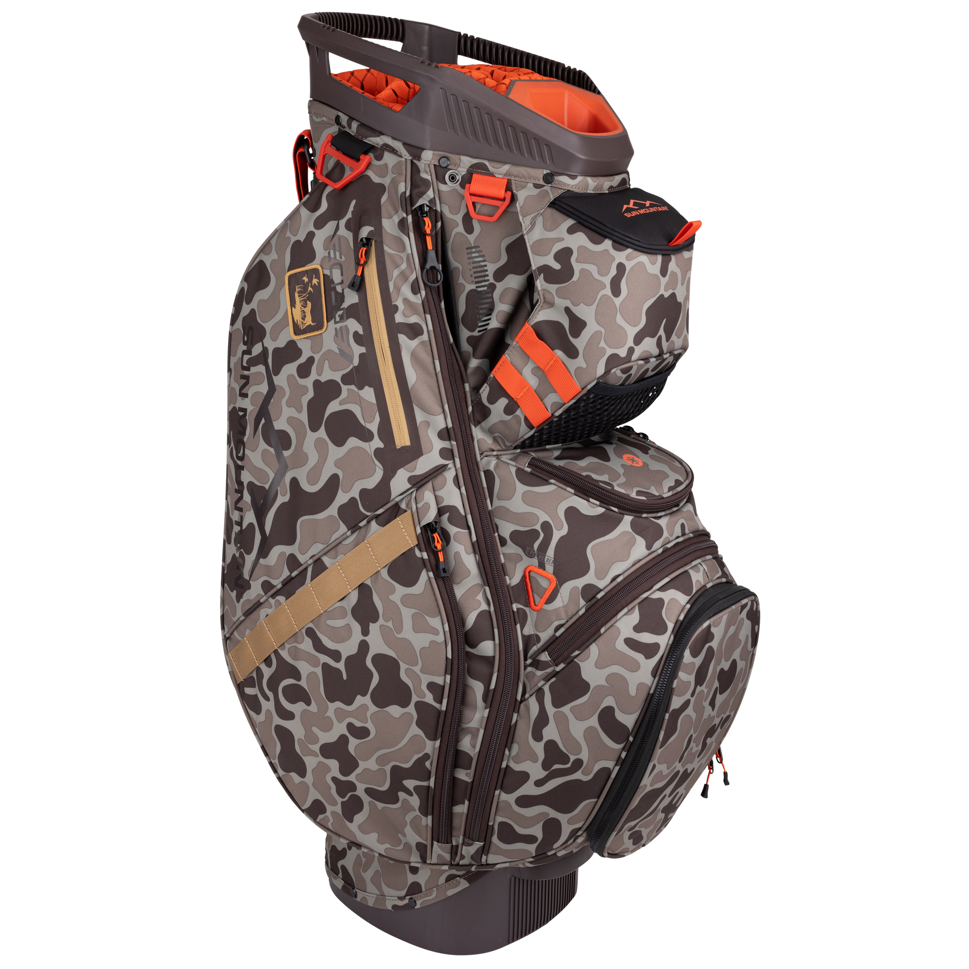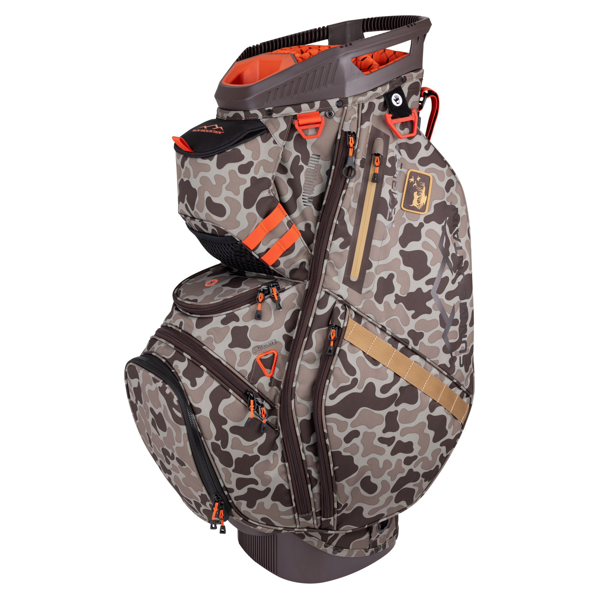 • Among the thirteen pockets are two full-length apparel pockets; a ventilated, cooler pocket; rangefinder pocket with magnetic closure; and two velour-lined pockets, one of which is water-resistant.
