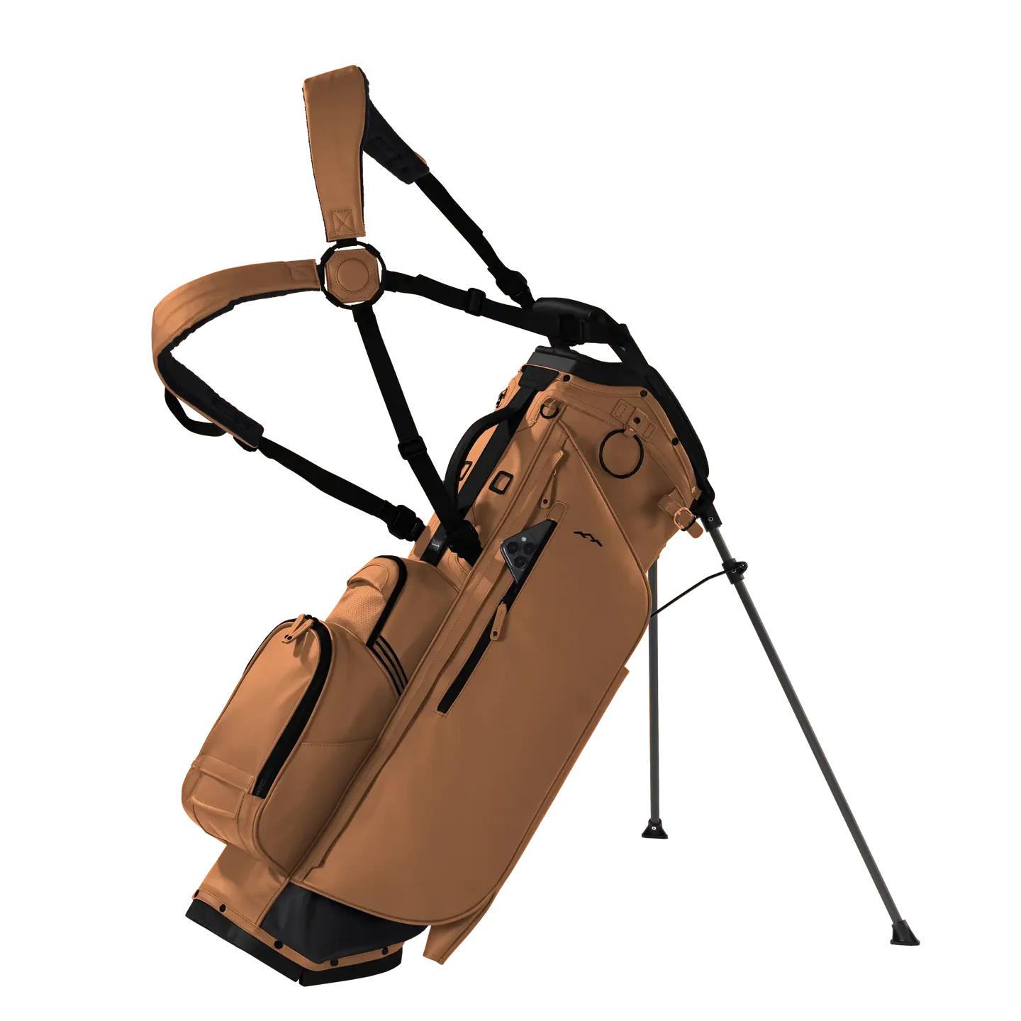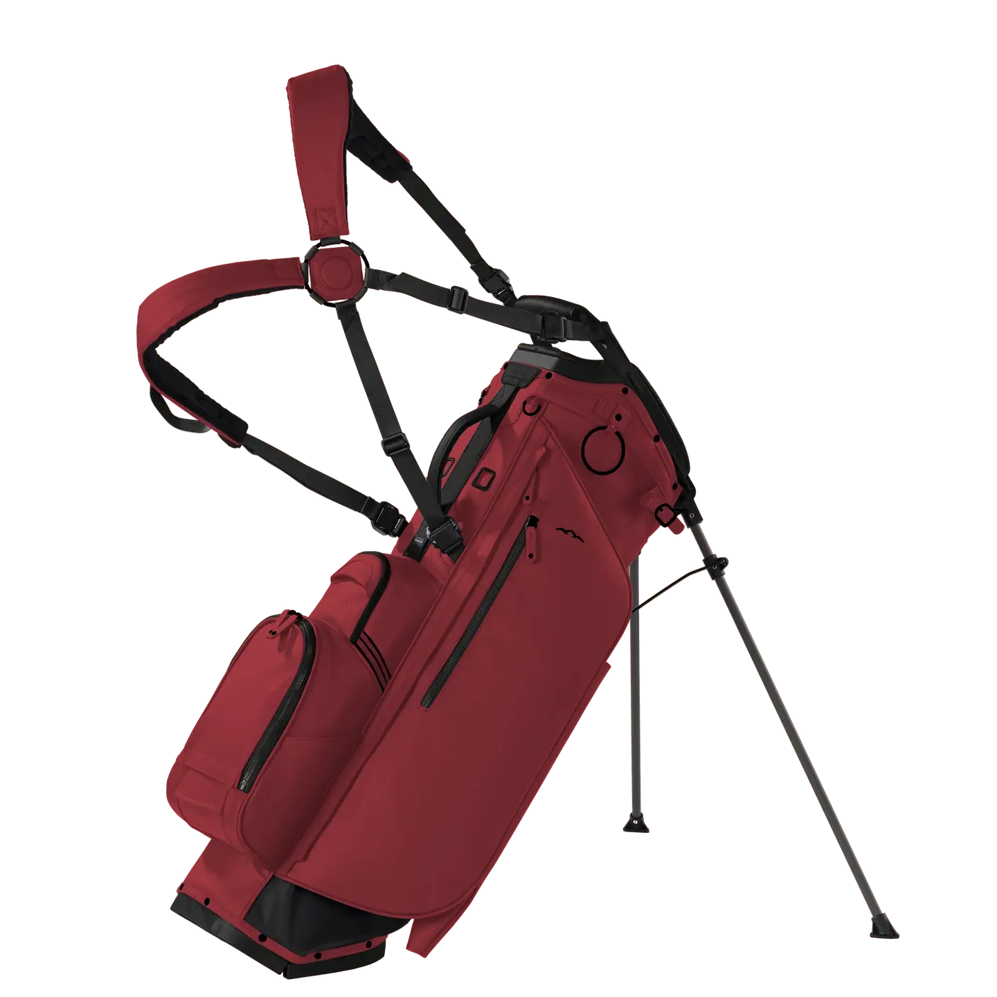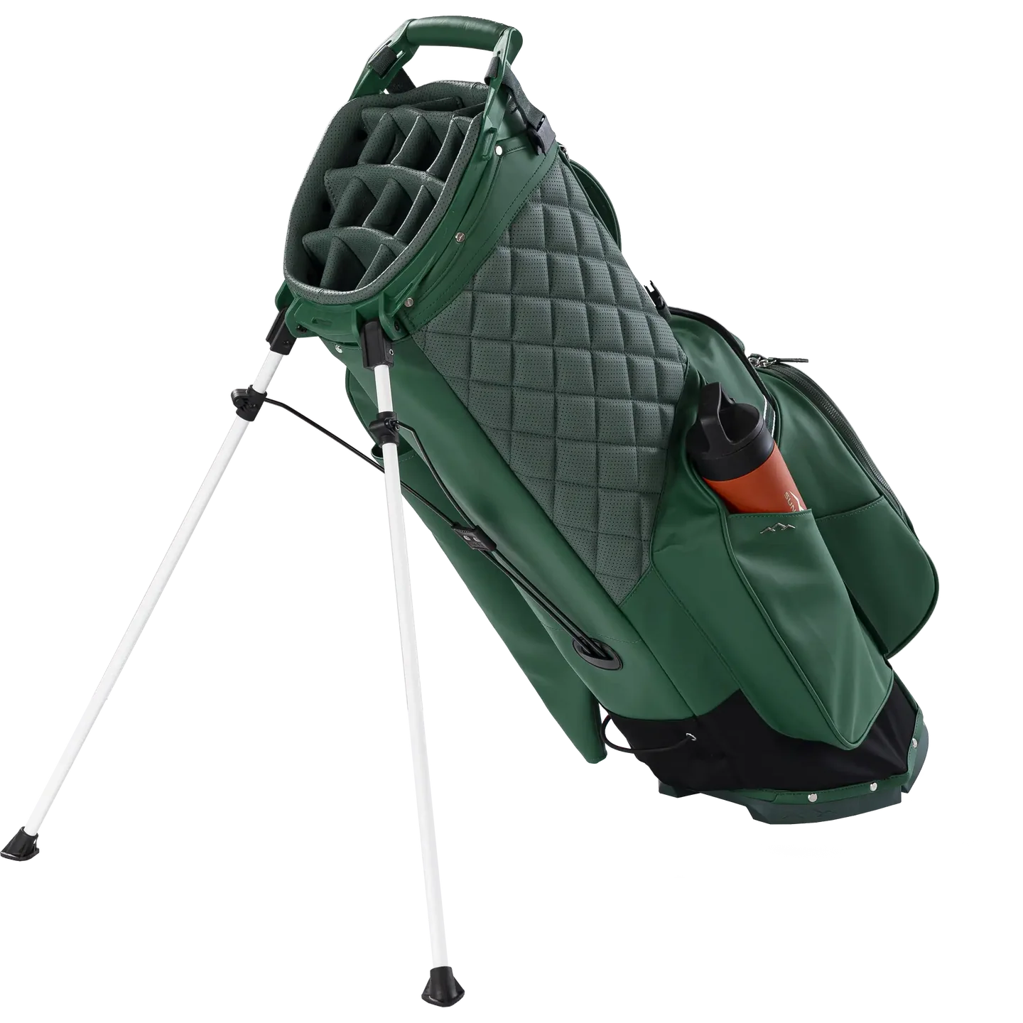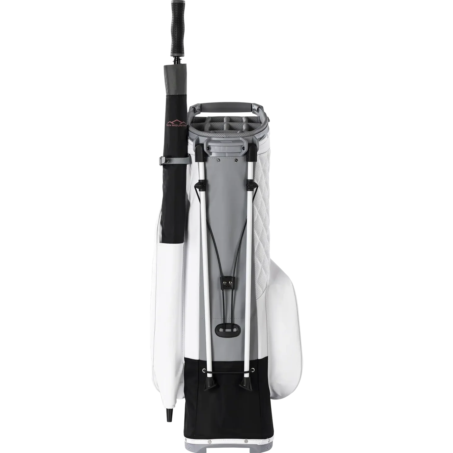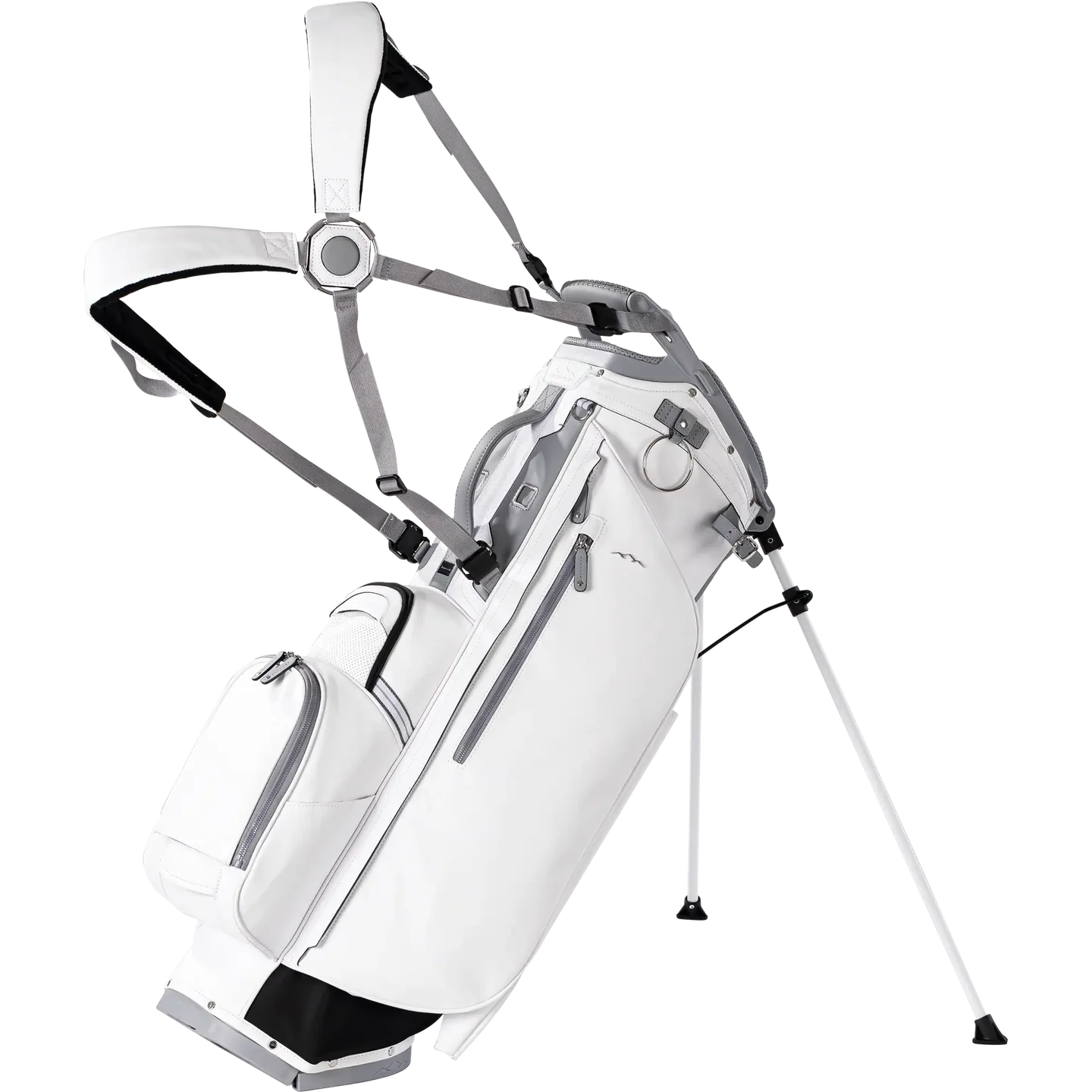 The dual strap system is engineered for comfort, distributing weight evenly for effortless carrying throughout your round. With nine strategically placed pockets, including a customizable zip-off ball pocket face and a customizable clothing pocket, this bag allows you to tailor your gear to fit your personal style. The internal compression bottom provides enhanced stability and protection for your clubs, ensuring they remain secure during transport. Designed for those who demand both sophistication and performance, this stand bag is your perfect companion on the course.