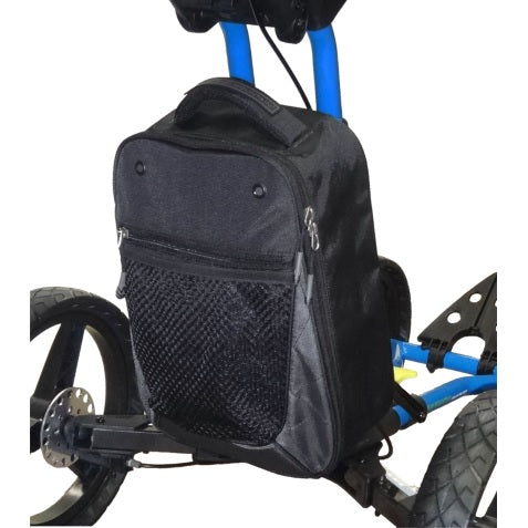 An accessory bag, the Micro-Paq, is designed to carry a sweater, headcovers or snacks. The bag quickly attaches to the frame of the cart with Velcro® tabs.