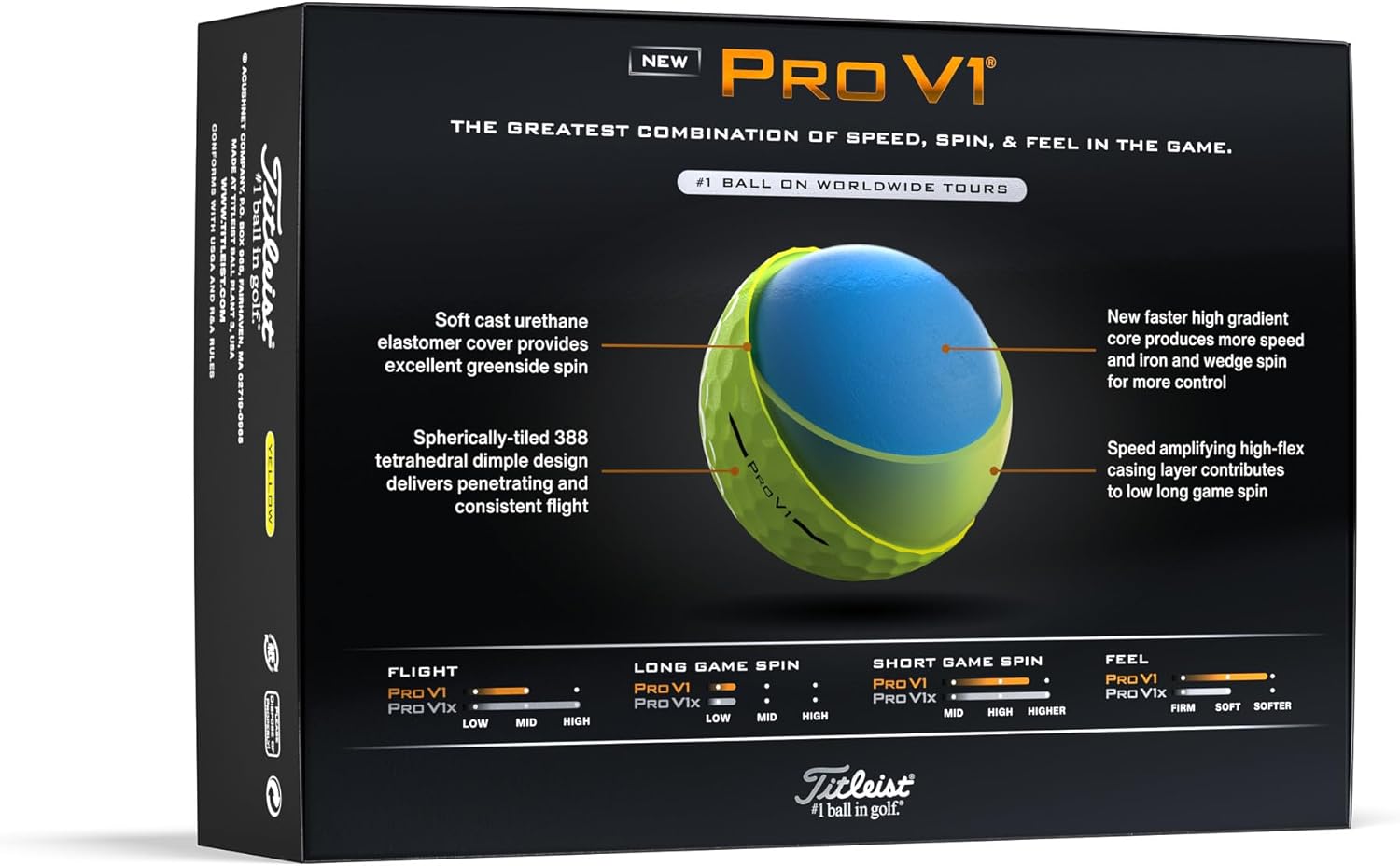 Pro V1 has a softer feel, less spin and flatter trajectory than Pro V1x, which makes it the preferred model for players who like exceptionally long distance, the ability to flight shots, and score with precision and touch.