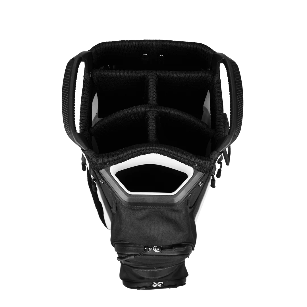 - 9 total pockets - including 6 zipped (one velour-lined pocket and one large garment pocket), one magnetic quick grab ball pocket, one insulated drink holder and one back pouch.