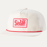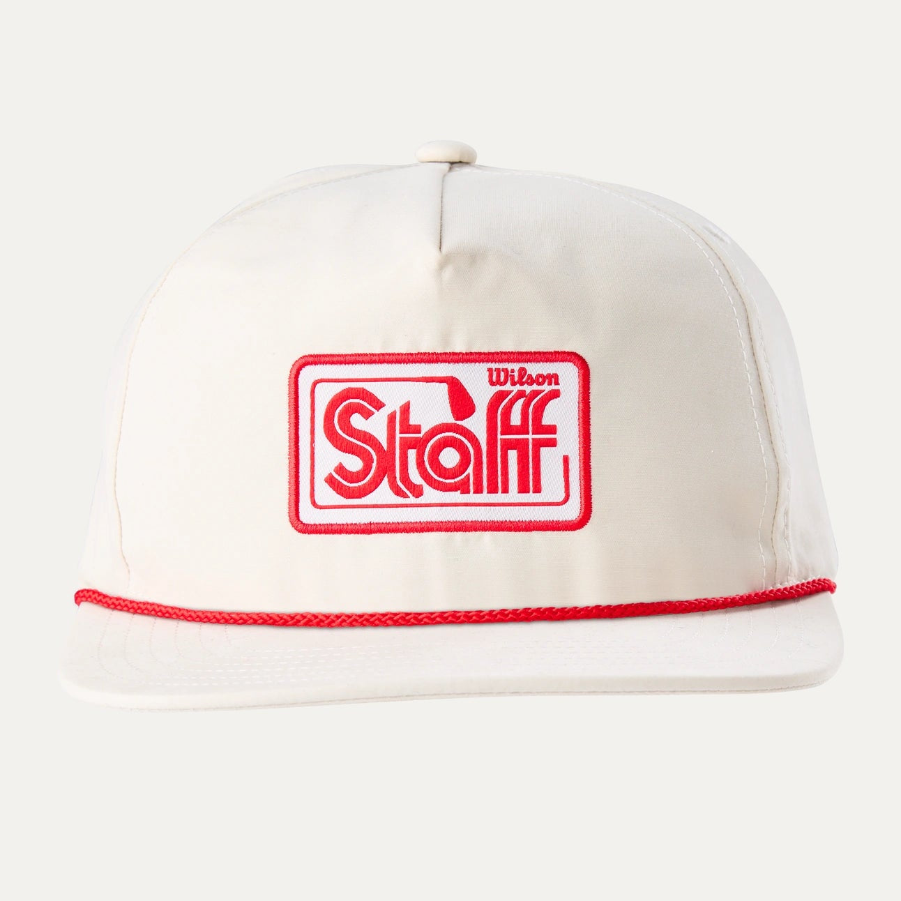 A classic rope hat silhouette, finished with a snapback closure and a retro Staff Model woven patch.